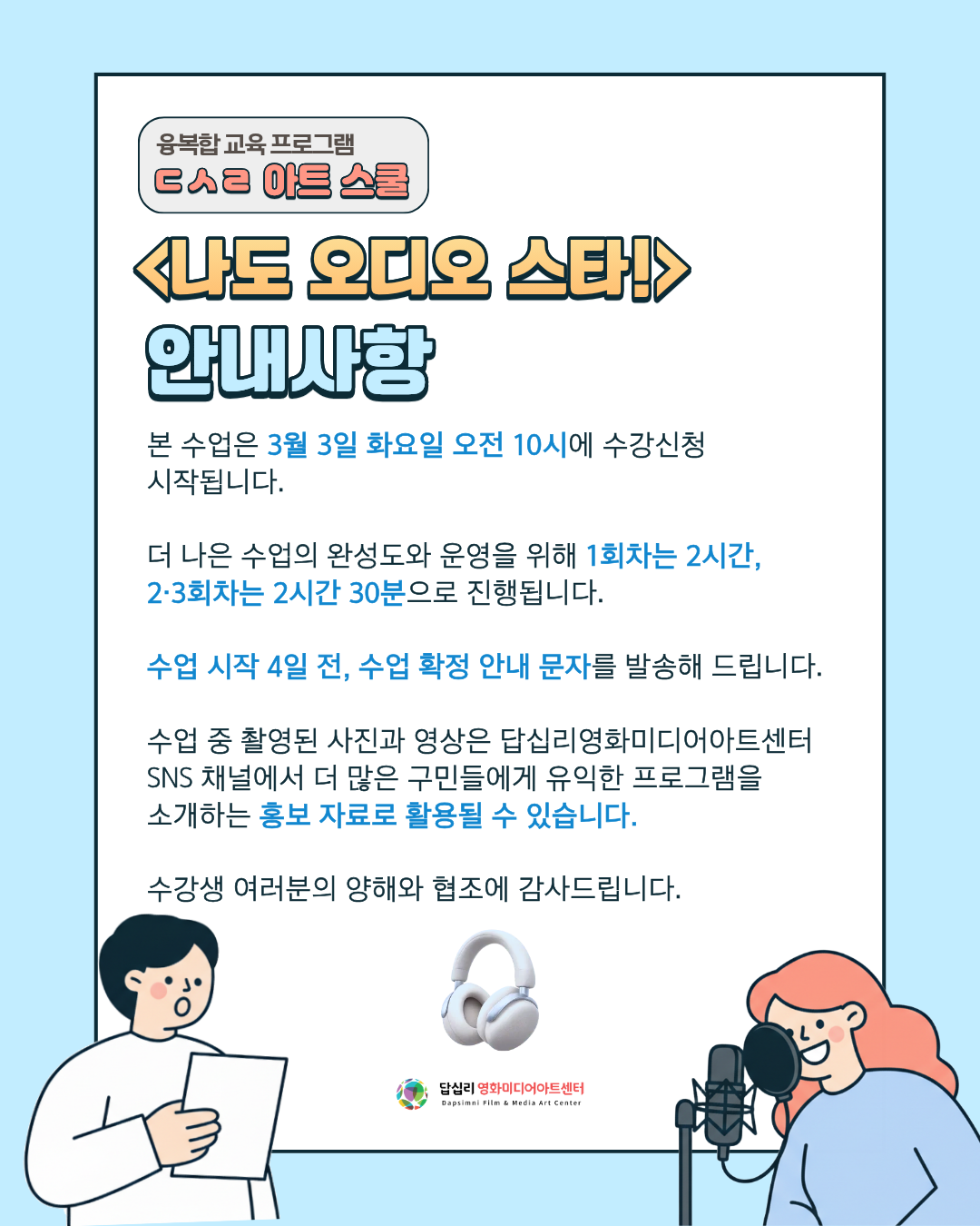 답십리영화미디어아트센터에서 마이크 앞 주인공이 되어 나만의 이야기를 세상에 들려주세요!