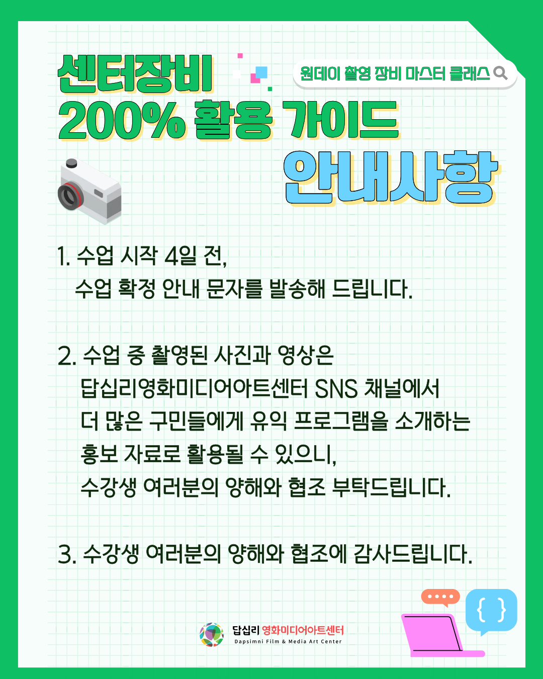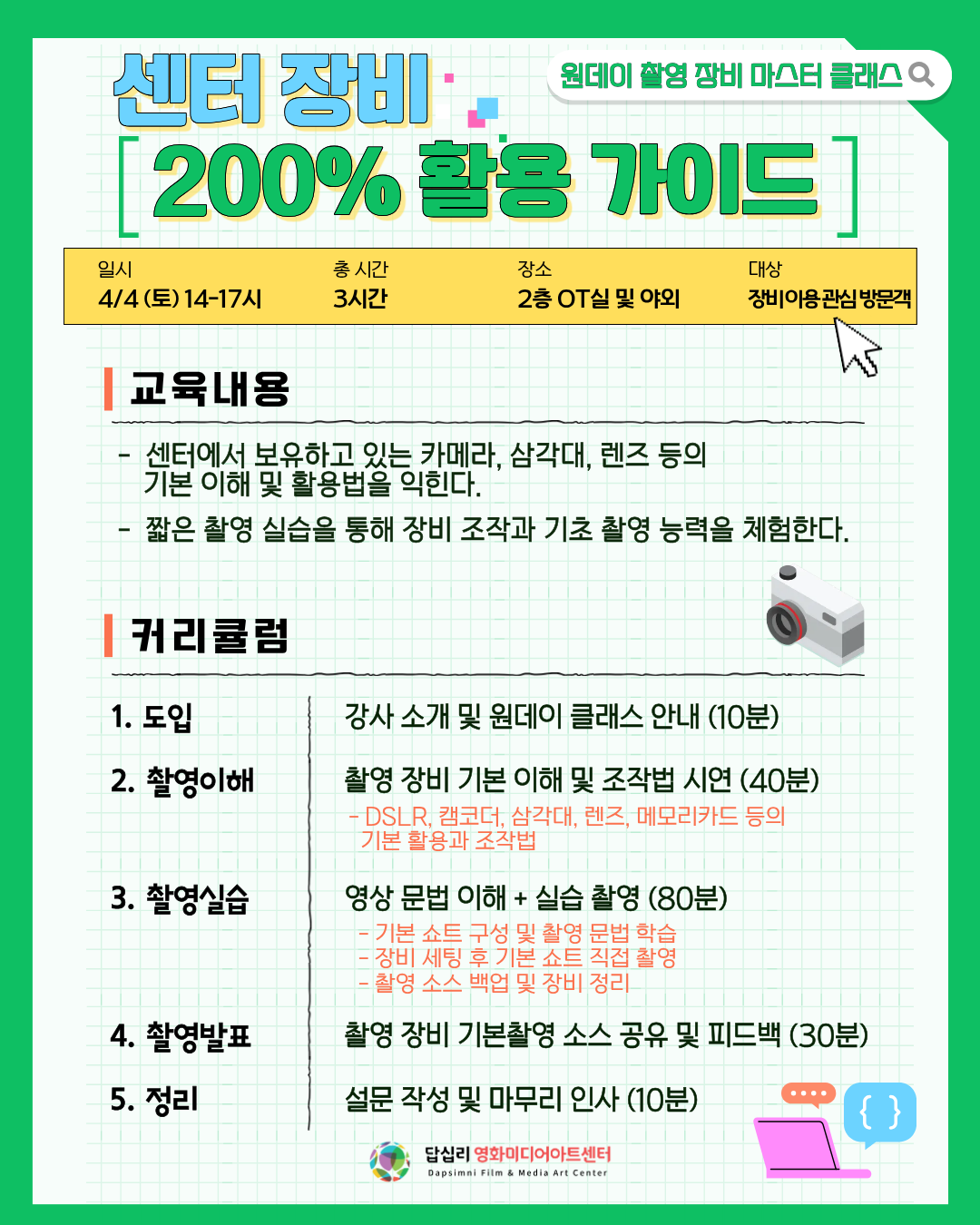 [센터 장비 200% 활용 가이드] 원데이 촬영 장비 마스터 클래스